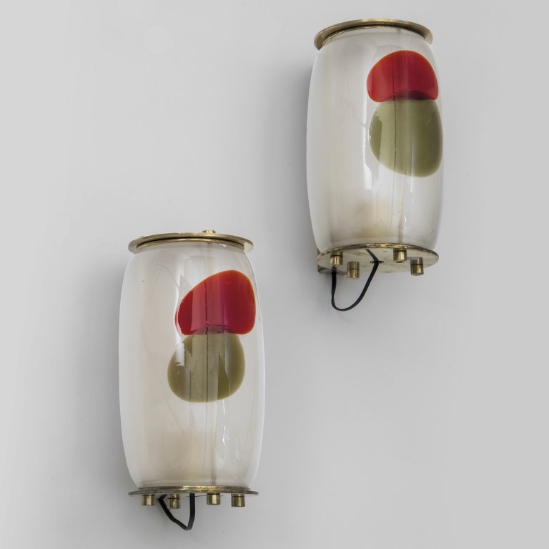 VENINI Due lampade a parete della serie "Cheerio", anni '70. Ottone, vetro...