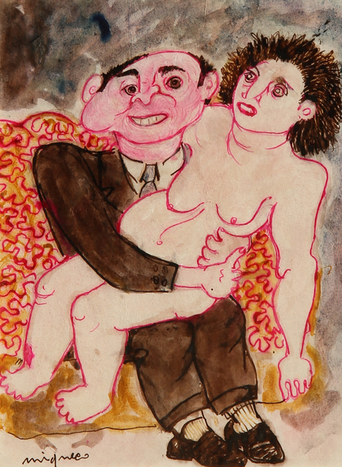 Giuseppe MIGNECO (Messina 1908-Milano 1997) Sposini, china colorata su carta applicata su tela, cm. 29 x 20, Firma 'Migneco' (in basso a sinistra) Autentica dell'artista su fotografia
