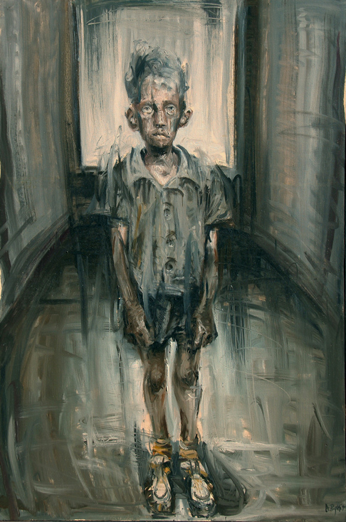 Alessandro PAPETTI (Milano 1958-) Ritratto , 1990, olio su tela, cm. 120 x 80, M.Goldin 'Alessandro Papetti', Galleria Pegaso, 1995, tav.6, Firma, data 'A.Papetti 90' (in basso a destra)