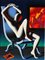 Mark KOSTABI (Los Angeles 1960-) La nascita della tragedia, 2000, olio su tela, cm. 61 x 45.5, Firma, data 'Kostabi, 2000' (in basso a sinistra) #Firma, titolo, data, misure, data 'Mark Kostabi, La nascita della tragedia, 2000, 24x18', 5-24-00-beddo' (al retro) Autentica dell'artista su fotografia