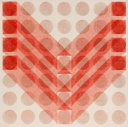 Carlo NANGERONI (New York, 1922-) Elementi dinamici, 1972, acrilico su tela, cm. 79 x 79, C.Vivaldi, 'Nangeroni', Gastaldelli Arte contemporanea, Milano,1974, Firma, data, titolo, tecnica 'Carlo Nangeroni, 1972, Elementi dinamici, colori acrilici'; #etichetta e timbro della galleria Gastaldelli, Milano (al retro) Autentica dell'artista su fotografia