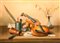 Antonio NUNZIANTE (Napoli, 1956-) Natura morta, 1987, olio su tela, cm. 50 x 70, Firma 'A. Nunziante' (in basso a destra) #Firma 'A. Nunziante' (al retro) Autentica dell'artista su fotografia, con n. AN1987-994B