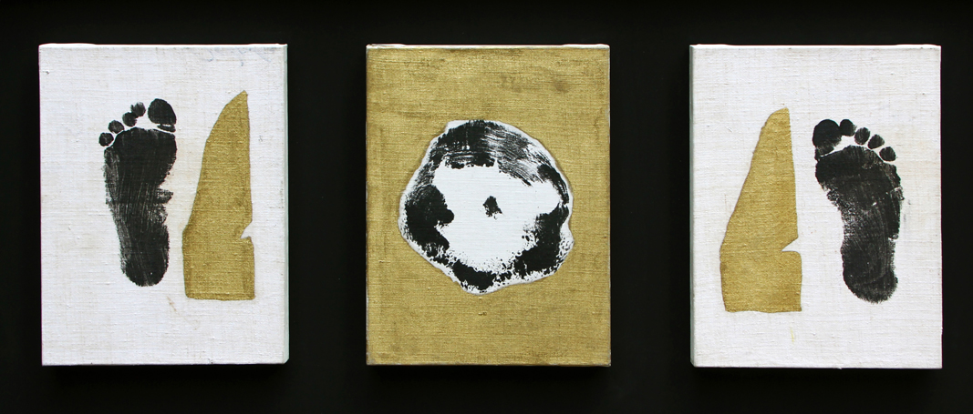 Mimmo PALADINO (Paduli 1948-) 1° Bassolino 2° Dalla, 2003, acrilici su tela, cm. 40 x 30, G.Domenico 'Inchiostro indelebile', Roma, Macro, 12 novembre - 15 dicembre 2003, Ed. H.L.Bettivò #, Trittico #La misura è riferita ad ogni pezzo. #Dedica, firma, data 'Per Horti Lamiani, M. Paladino, Lucio Dalla, 2003' (al retro) Autentica dell'artista su fotografia