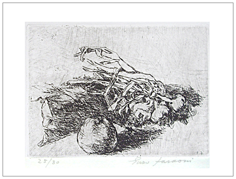 ENZO FARAONI Santo Stefano Magra 1920 Senza titolo Puntasecca es.25/30. Firma in b. a d. sul foglio e sulla lastra. (34,5 x 49,8 foglio – 14 x 19,5 inc.) B.A.: 50