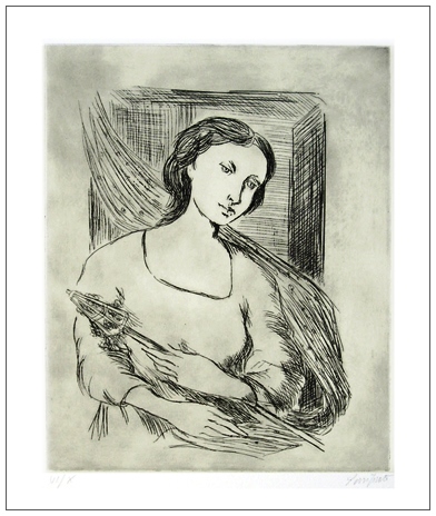 DOMENICO PURIFICATO Fondi 1915 – Roma 1984 In casa 1982 Acquaforte es.VI/X. Firma + timbro a secco “Il tritone” in b. a d. (50 x 35 foglio – 24,7 x 19,7 inc.) Opera completa di cartellina. B.A.: 80