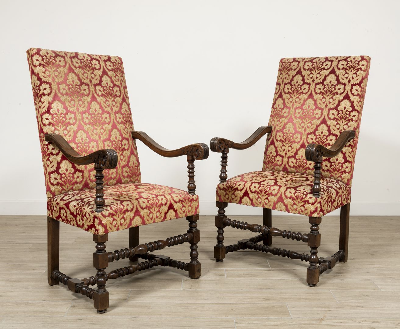 COPPIA SEGGIOLONI FINE XVIII SECOLO In noce con struttura a rocchetto...