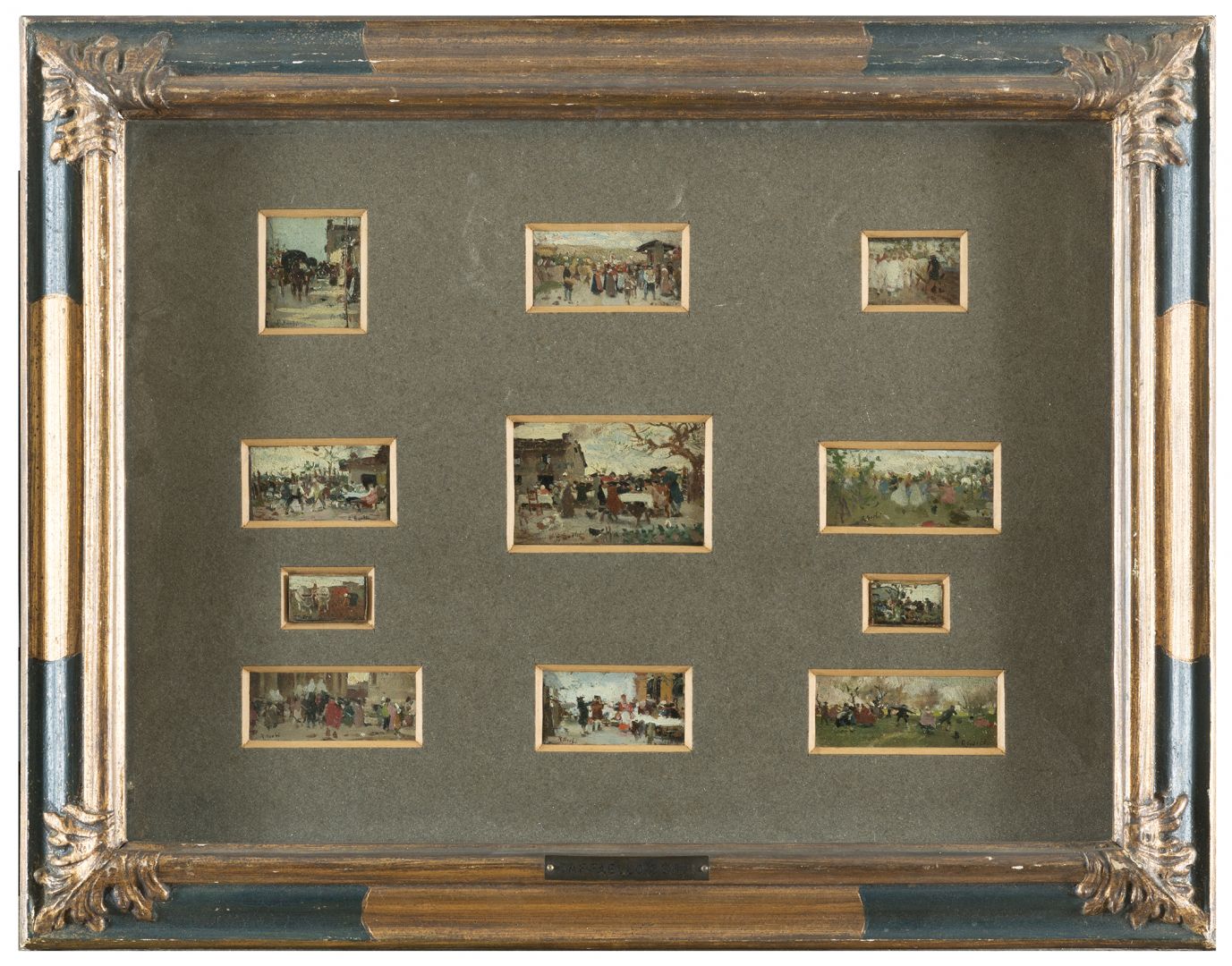 Undici mini dipinti in unica cornice ad olio su tavoletta