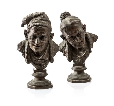 TOMMASO CAMPAJOLA Napoli XIX- XX Secolo Busto di vecchietto e vecchietta...