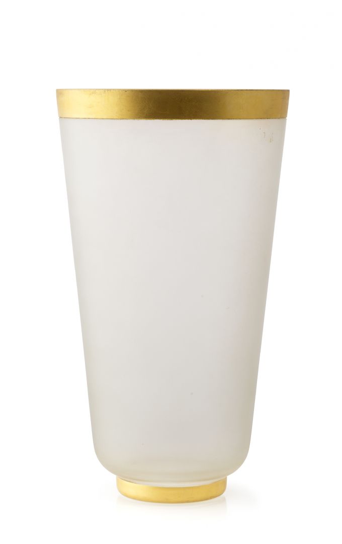 GRANDE VASO IN VETRO SALVIATI a forma conica in cristallo sabbiato con bordi...