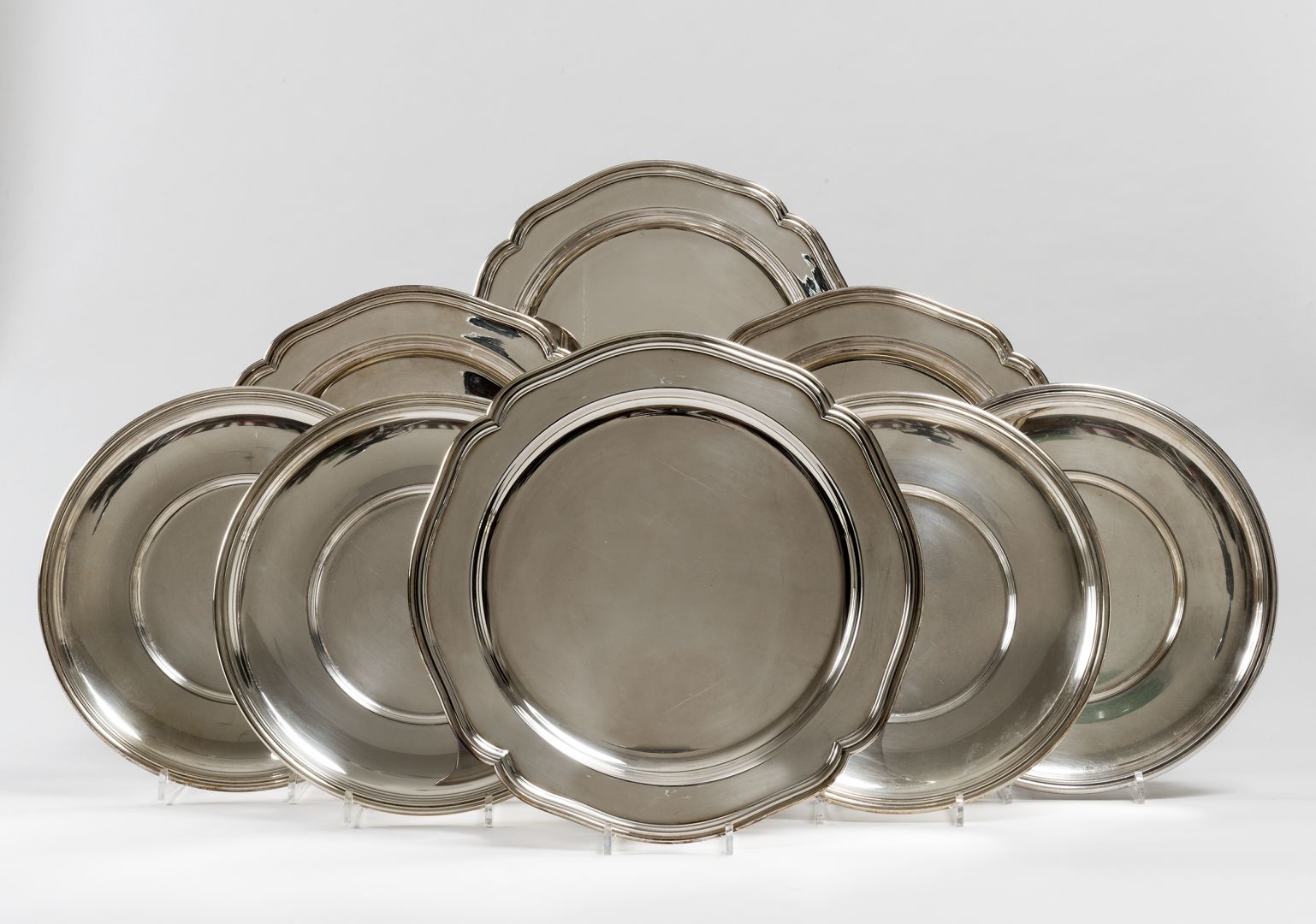 VENTIQUATTRO PIATTI SILVER PLATE Di cui dodici grandi con bordo mosso e...