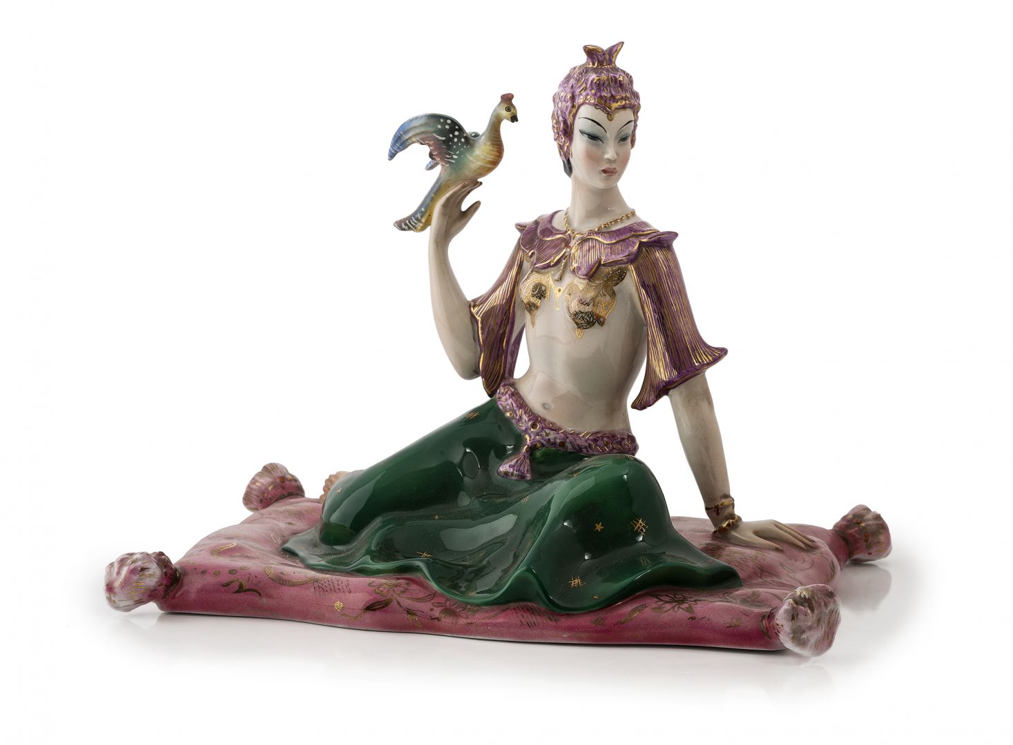 CERAMICA RONZAN 1935 circa raffigurante Odalisca su cuscino volante con...