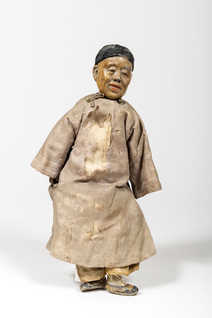 PERSONAGGIO CINESE pupazzo con volto mani e piedi in legno dipinto Fine XVIII...