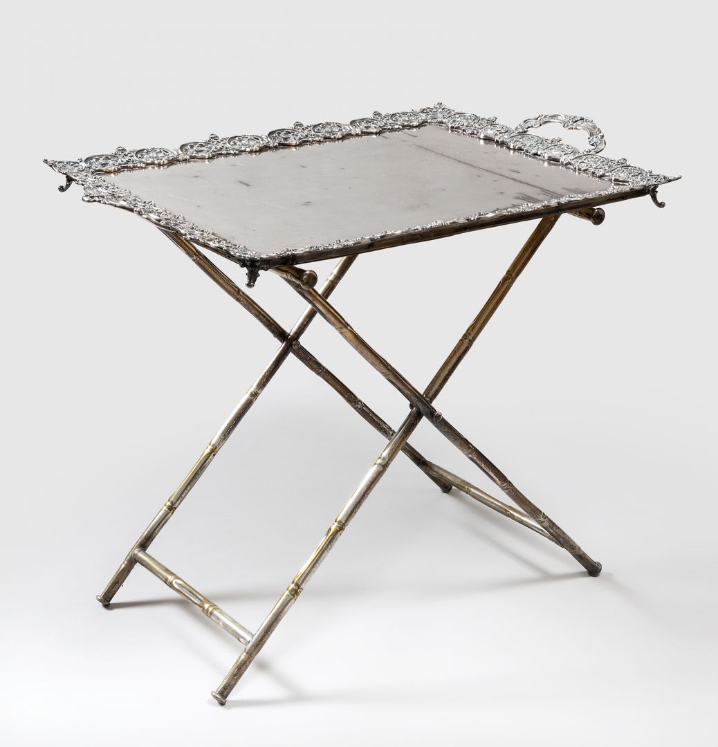 VASSOIO CON STAND in metallo argentato Inghilterra anni 50' Misure cm 57 x 70...