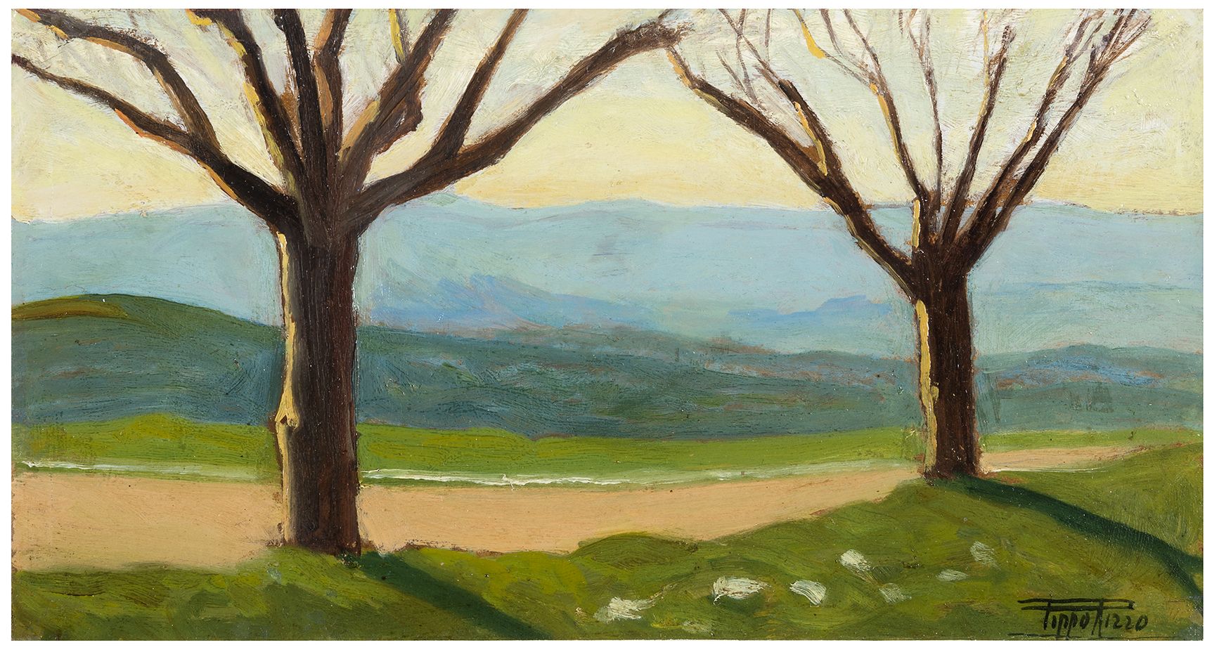 PIZZO RIZZO Corleone 1897 - Palermo 1964 Veduta campagna siciliana Olio su...