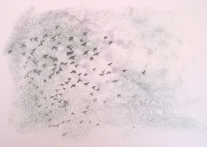 Valentina Ceci Milano 1985 Stormo 2016 disegno a penna biro su trasferimento di immagine su cartoncino Schoeller 30x40
