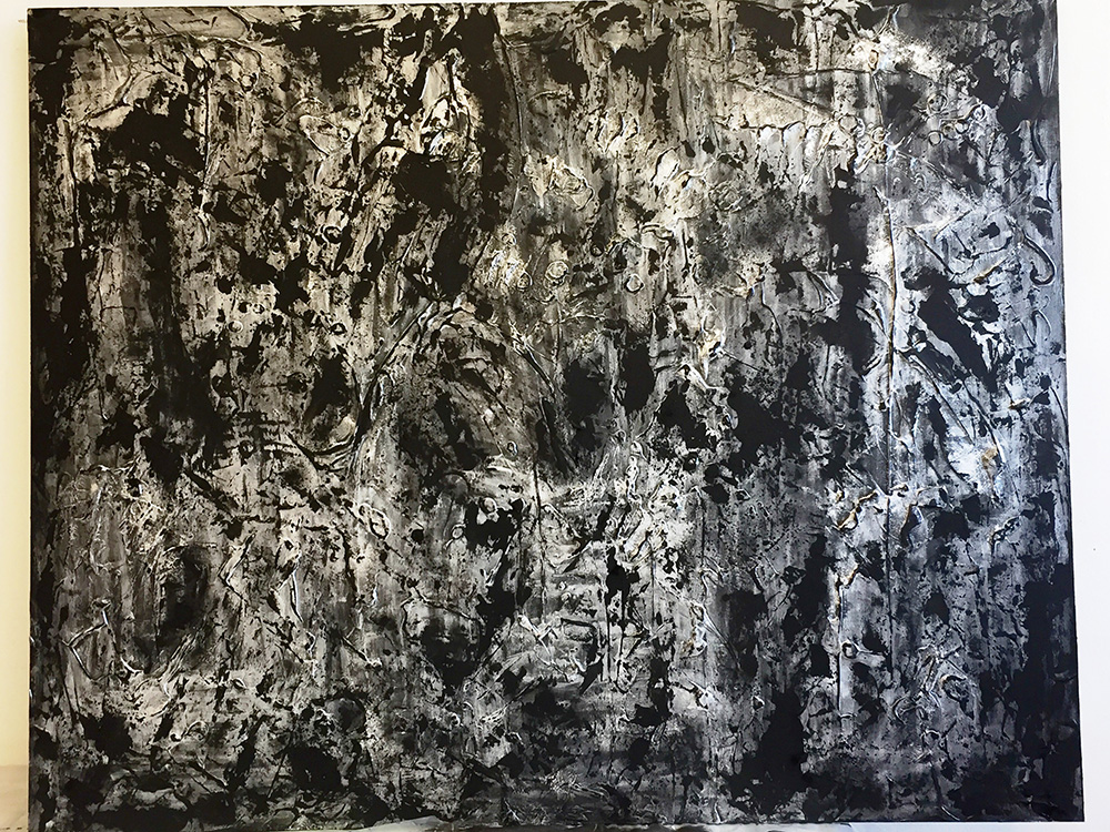 Iole Oliva Milano 1991 Oltre la superficie 2016 Gesso nero e pigmenti metallici (argento) su mdf 80x100 Certificato di autenticità