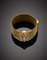 Bracciale in oro giallo con chiusura in rilievo, smalti blu e microperle, chiusura a fibbia regolabile, g. 69,90, h cm 2,70 (lievi difetti) A micro-pearls gold bracelet (minor defects)