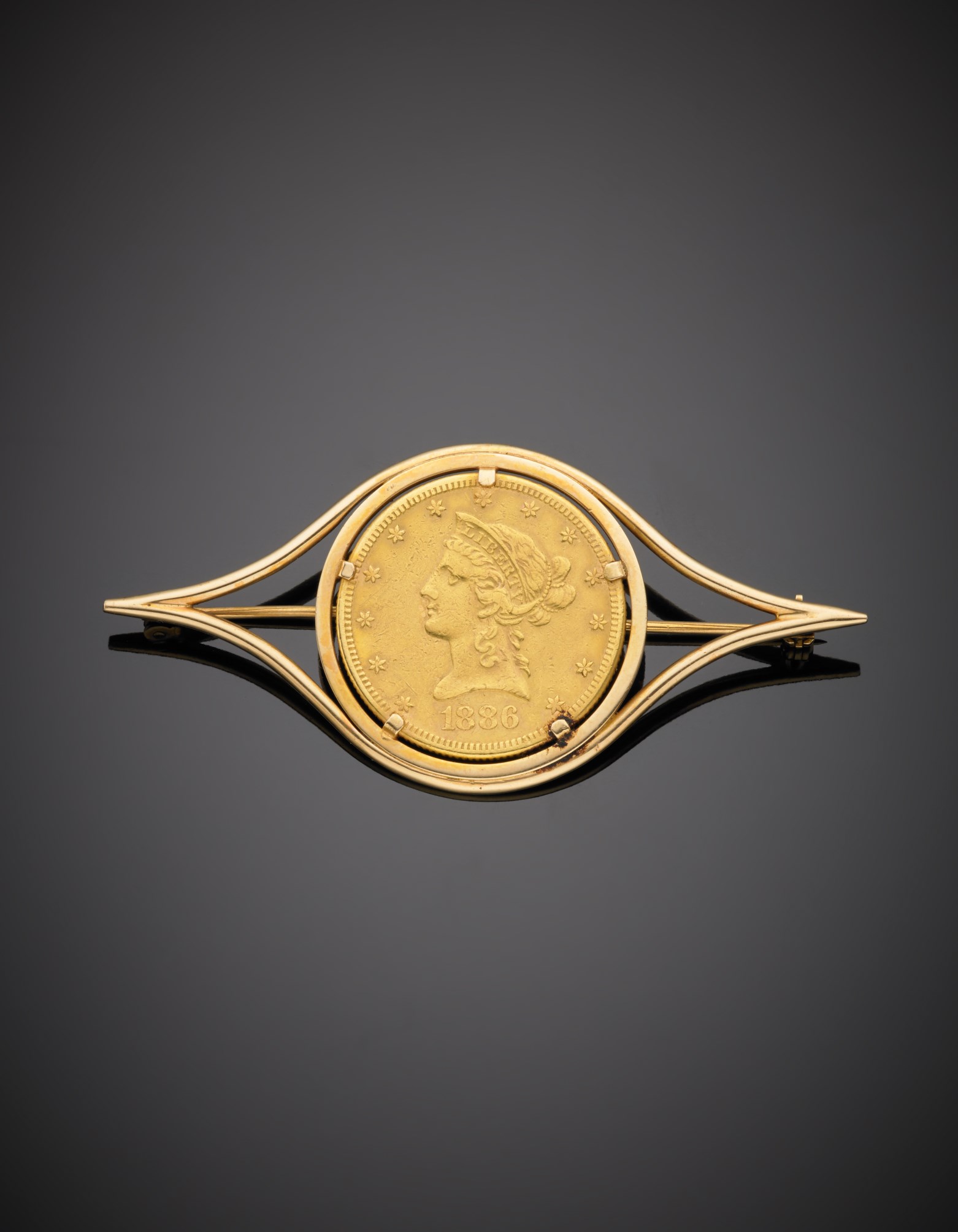 Spilla in oro giallo, con dieci dollari degli Stati Uniti del 1888, g. 26,50 A 10 Dollar gold brocch