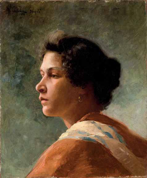 Vincenzo Caprile Napoli 1856 - 1936 Ritratto di fanciulla, 1898 olio su tela, cm 46x67. Firmato e datato in alto a sinistra: V Caprile 1898 Napoli