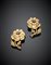 Lot 495 | Doppia broche a guisa di fiori in oro giallo e pietre azzurre, g.12,60 lungh....