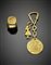 Portachiave ed anello in oro battuto e striato, nel portachiavi in rilievo la...