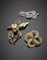 Lotto composto da tre spille in oro bianco e giallo, con rubini e piccole perle g.34,00 Bi-coloured gold lot of three brooches with rubies and pearls