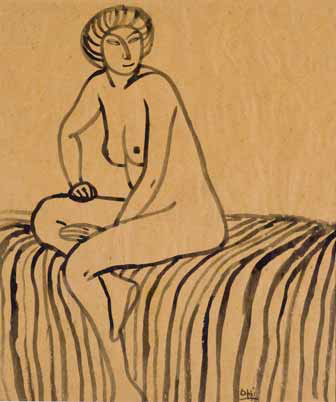 Ubaldo Oppi Bologna 1889 – Vicenza 1942 Nudo sul divano, 1913 inchiostro su carta, cm 26,5x22,4. Firmato in basso verso destra: Oppi. Esposizioni: Vicenza, Palazzo Chiericati, Mostra retrospettiva di Ubaldo Oppi, 25 ottobre-14 dicembre 1969; Venezia, Ala Napoleonica e Museo Correr, Gli anni di Ca’ Pesaro, 19 dicembre 1987-28 febbraio 1988 (etichetta al verso). Bibliografia: Mostra di Ubaldo Oppi, catalogo della mostra, a cura di L. Magagnato, Ed. Comune di Vicenza, Vicenza 1969, n. 104, Tav. 16 riprodotto b/n. Venezia. Gli Anni di Ca’ Pesaro 1908- 1920, catalogo della mostra, Ed. Mazzotta, Milano 1987, n. 10, p. 179 riprodotto b/n;