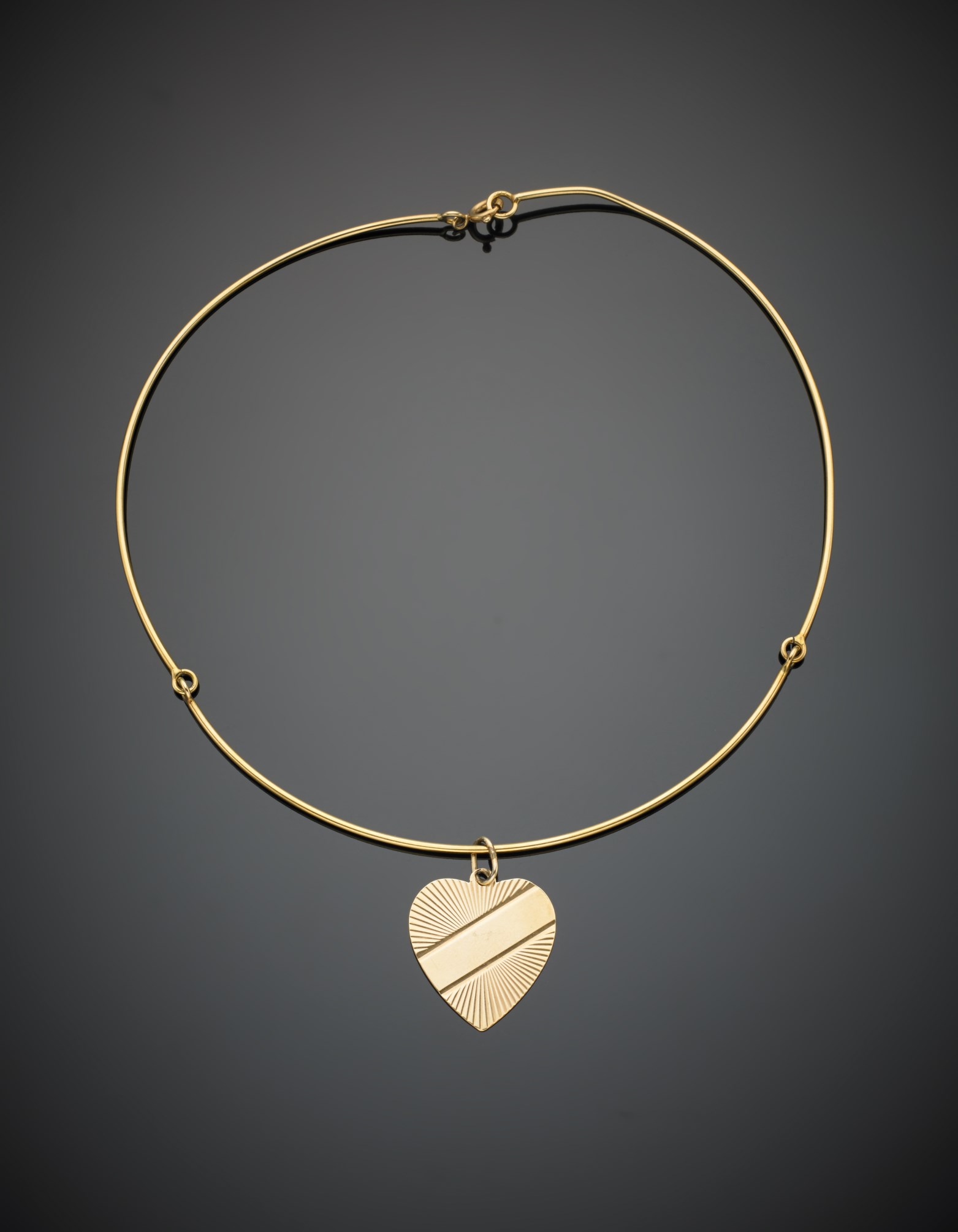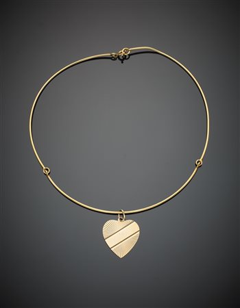 Girocollo semirigido in oro giallo 750/1000 di g.10,80 con pendente a cuore in oro giallo 333/1000 di g.3,40 A gold necklace with a low carat gold pendant