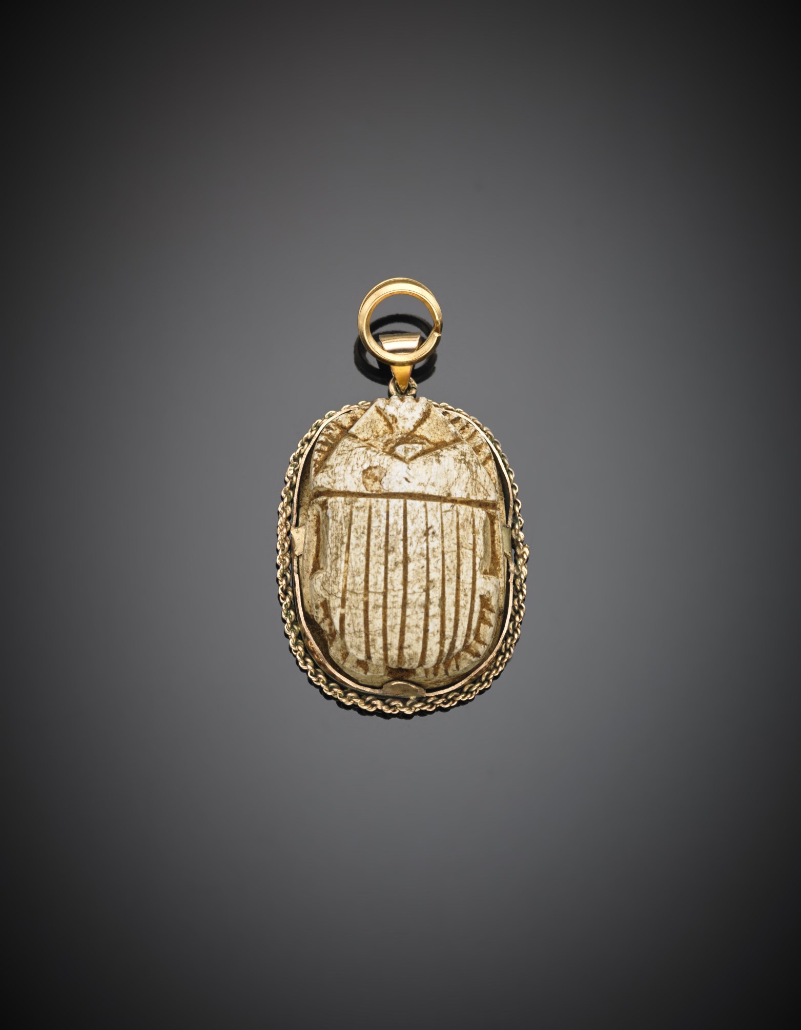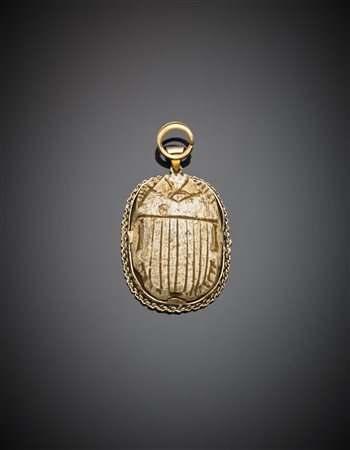 Pendente "scarabeo" montato in oro giallo 333/1000 g. 11,60 lungh. cm 4,3 A low carat gold scarab pendant