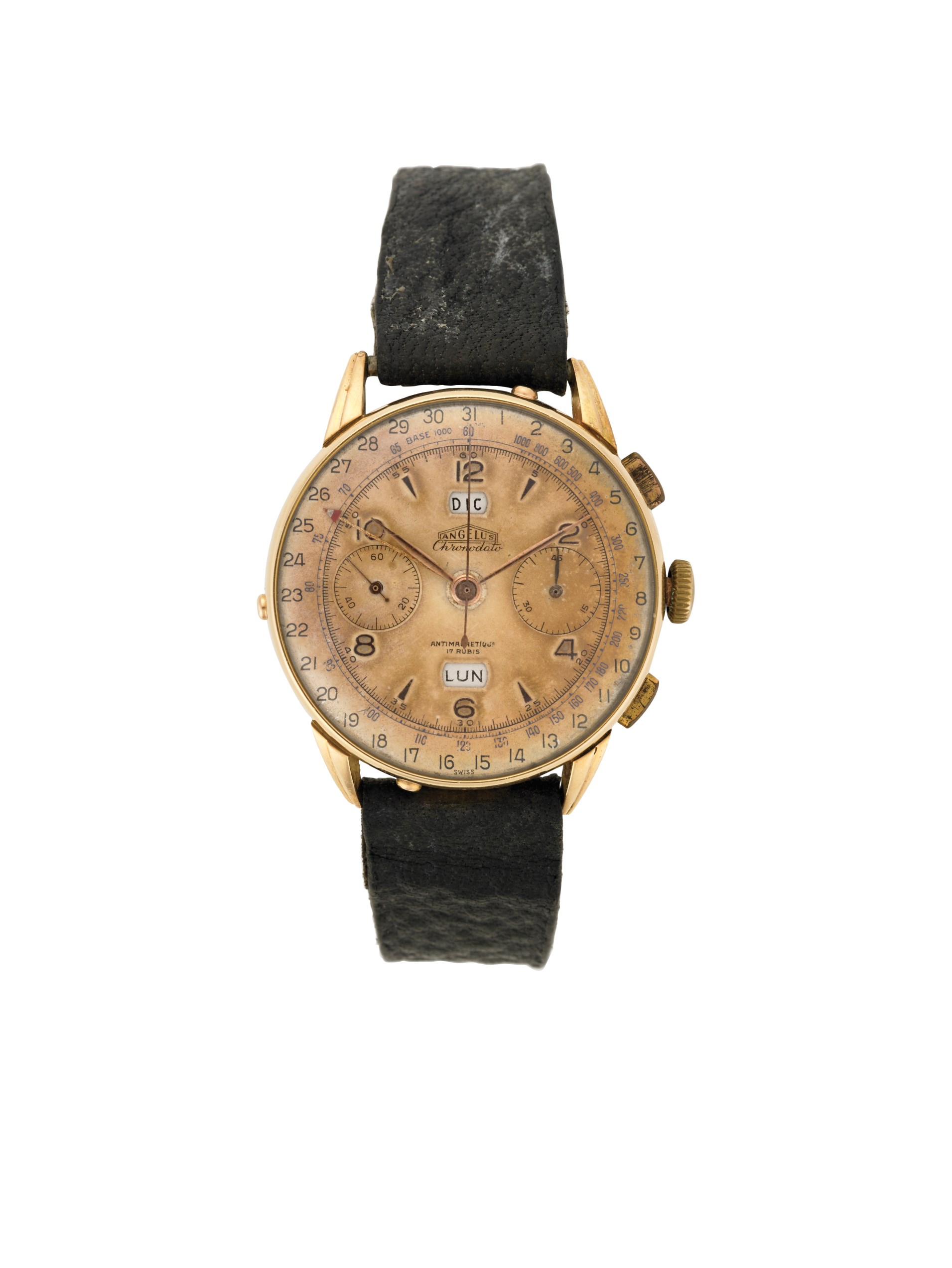 ANGELUS CRONO-DATO Orologio da polso da uomo in oro 18k Anni '50 Quadrante...