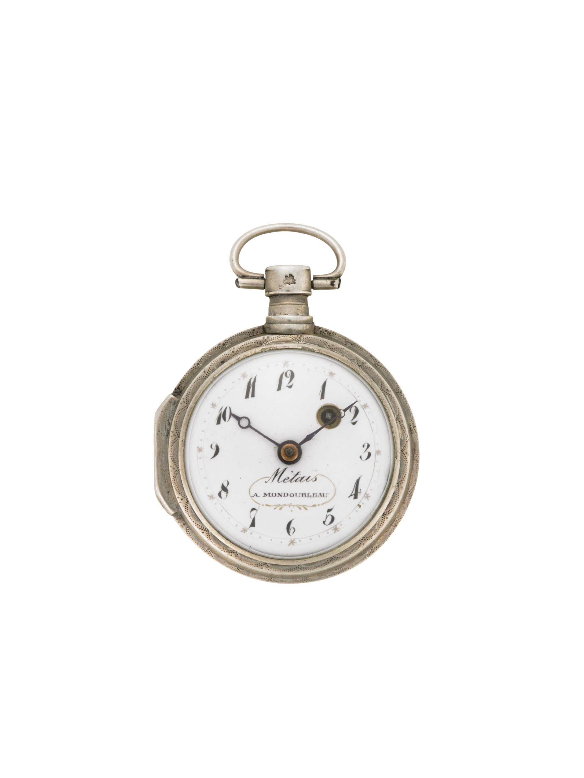 METAIS Orologio da tasca da uomo in argento Epoca inizio sec. XIX Quadrante e movimento firmati Movimento con carica a chiavetta, scappamento a verga Quadrante bianco con numeri arabi Diam. mm 46 METAIS Gent's silver pocket watch Early 19th century Dial and movement signed Key-wind movement, white dial, Arabic numerals Diam. mm 46
