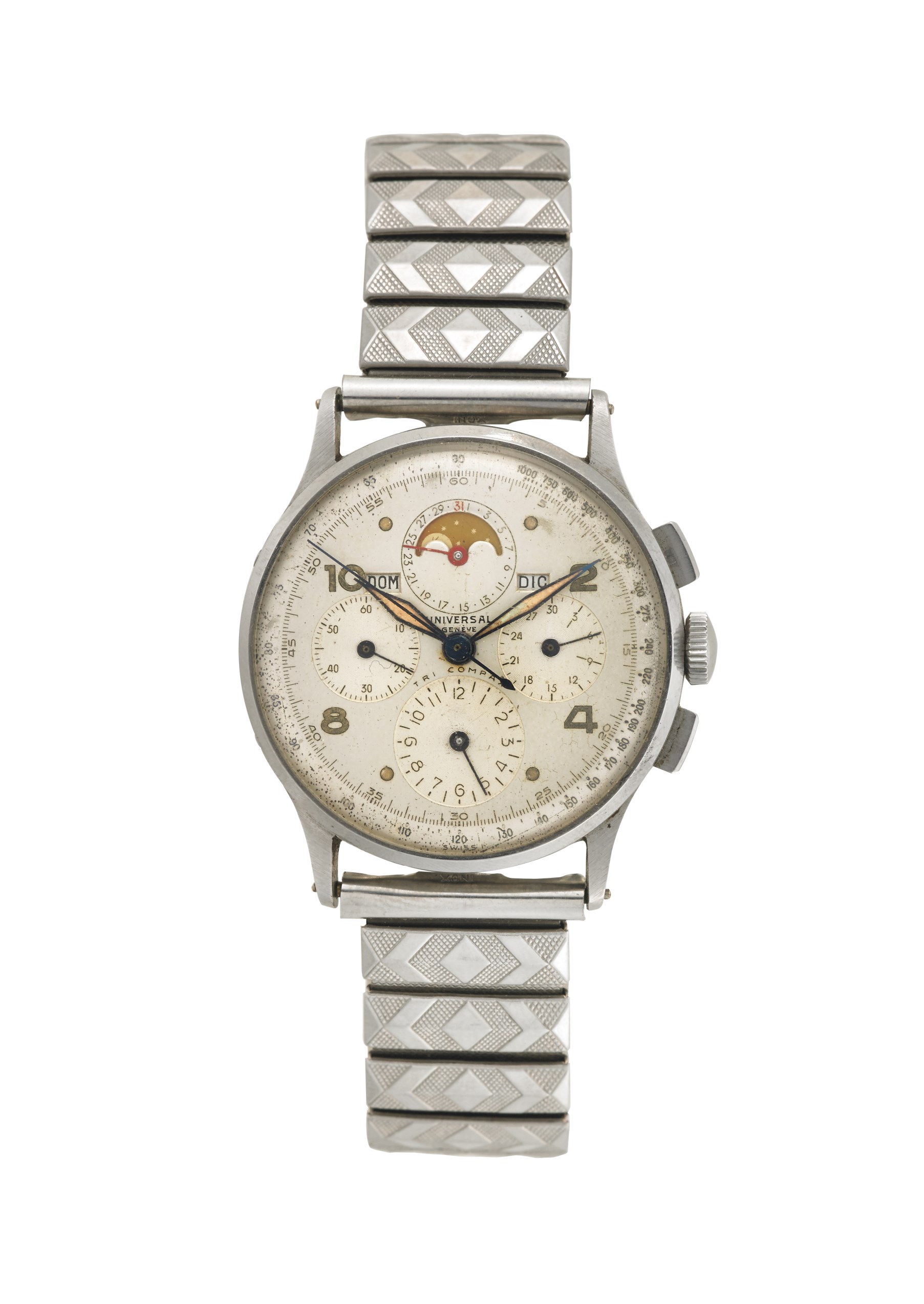 UNIVERSAL TRICOMPAX Orologio da polso da uomo in acciaio Anni '40/'50...