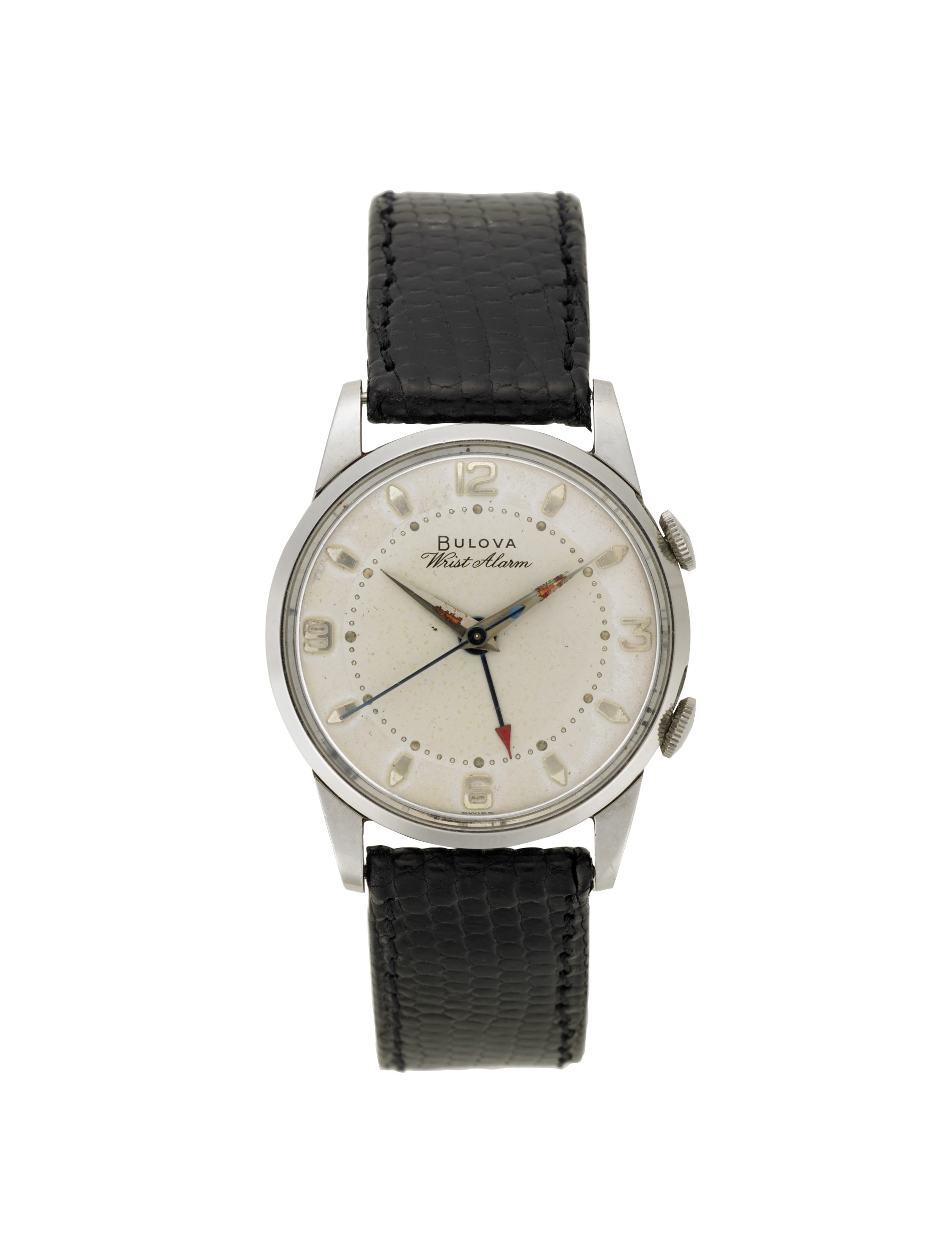 Lot 742 | BULOVA WRIST ALARM Orologio da polso da uomo in acciaio Anni '60 circa...