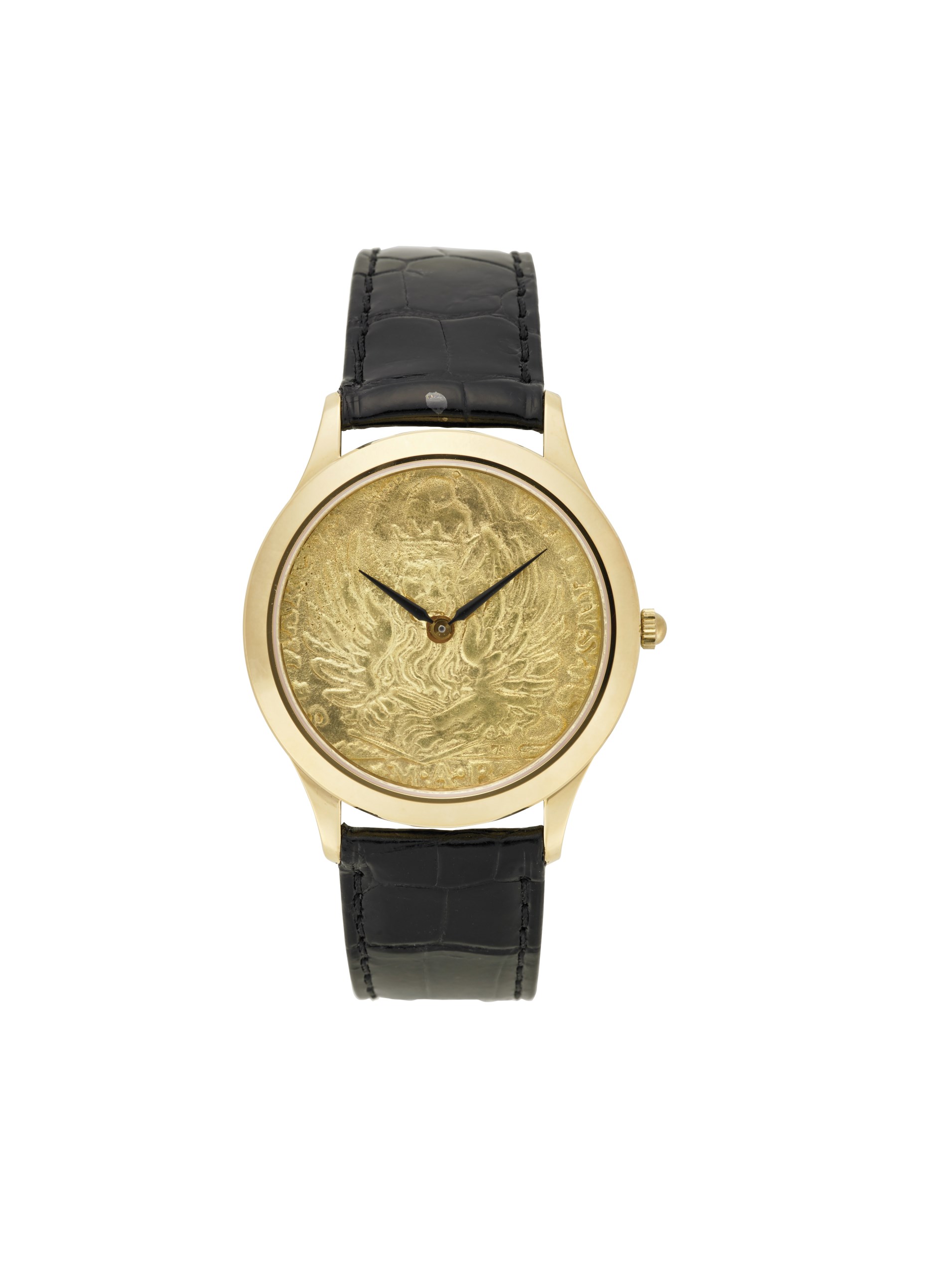 MISSIAGLIA Orologio da polso da uomo oro 18K Epoca recente Movimento al quarzo Quadrante in oro con moneta con S. Marco MISSIAGLIA Gent's 18K gold wristwatch Recent production Gold St. Marco coin dial
