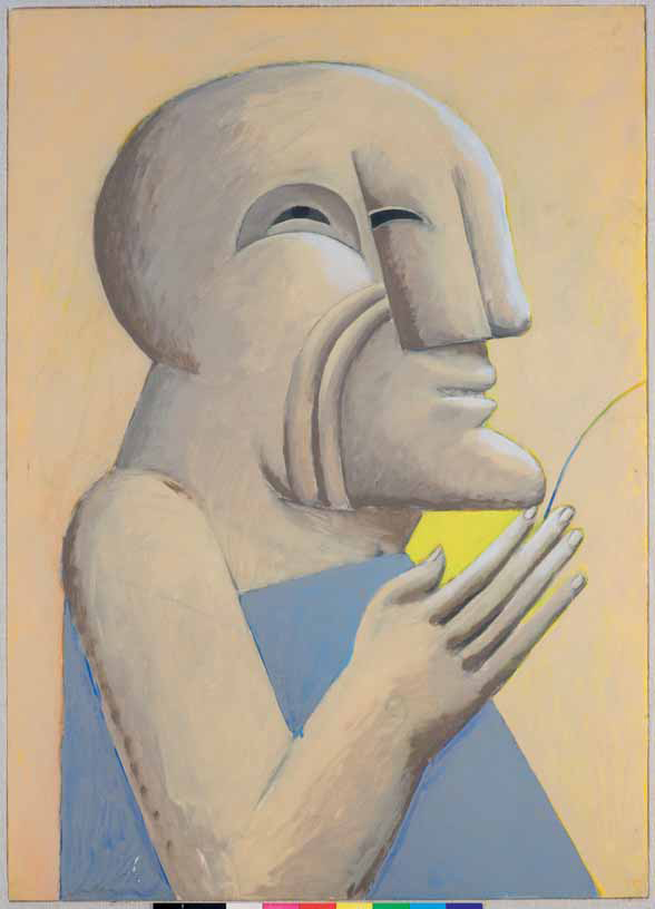 Horst Antes Heppenheim, Germania 1936 Portrait mit Gelb unter Kinn, 1973 gouache su carta applicata su tela, cm 97x70. Firmato in basso a sinistra: Antes. Provenienza: Milano, Falchi Arte Moderna (etichetta al verso sul telaio); Zurigo, Gimpel & Hanover Galerie (etichetta al verso sul telaio).