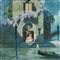 Rodolfo Paoletti (Venezia 1866 - Milano 1940) "Canale veneziano con figura in maschera" olio su compensato (cm 50x50) Firmato in basso a destra (difetti) In cornice