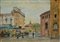 Alfonso Corradi (Castelnovo di Sotto 1889 - Milano 1972) "Milano, Vecchio Verziere" 1943 olio su compensato ( cm 25x35) Firmato in basso a sinistra Provenienza: Galleria d'arte Ponte Rosso, Milano. Cartiglio e timbri al retro In cornice