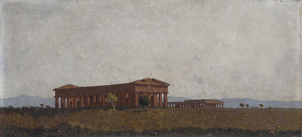 Georges Paul Leroux (Parigi 1877 - Meudon 1957) "Veduta di Paestum" 1912 olio su tela (cm 32x69) Firmato e datato in basso a sinistra In cornice