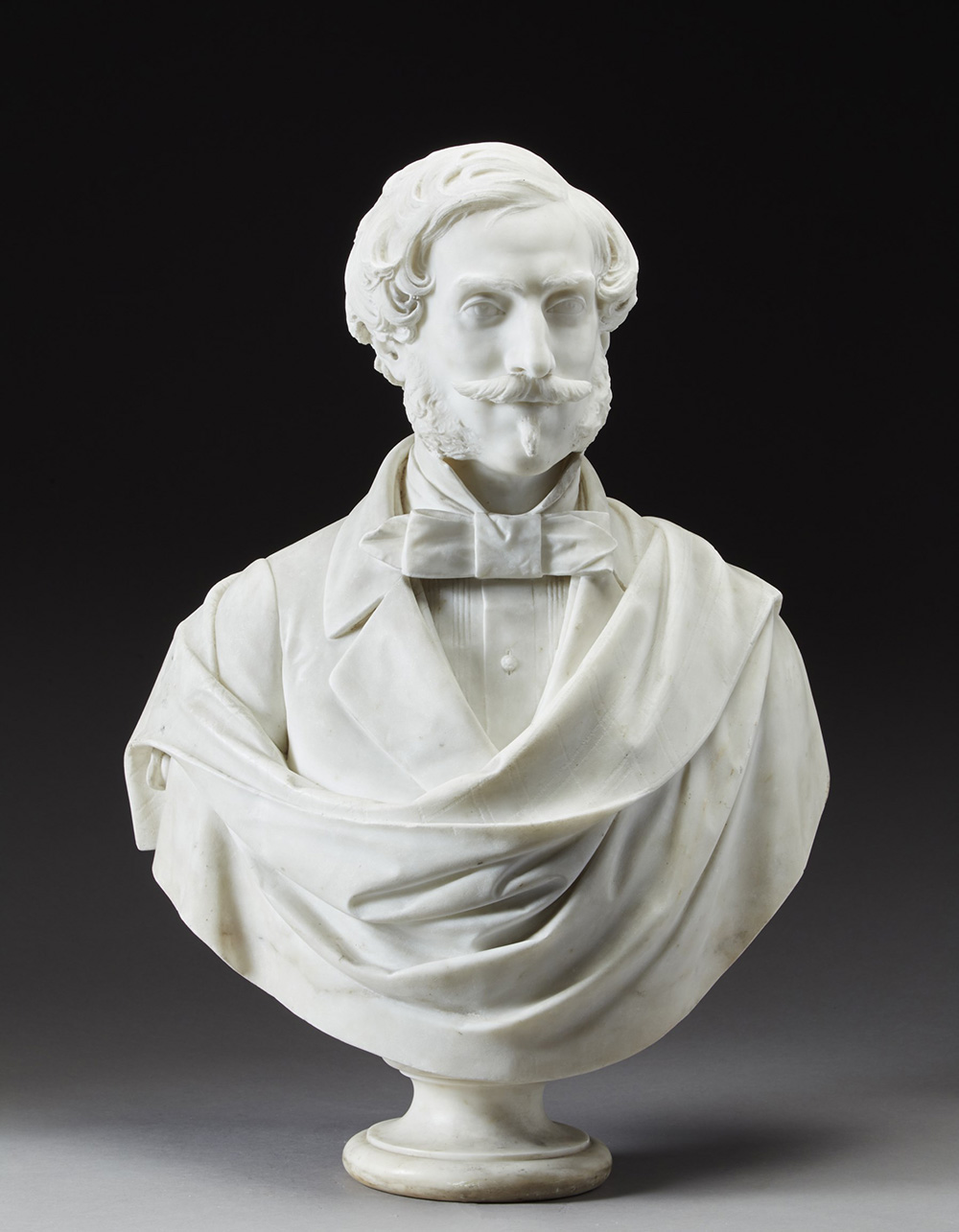 Abbondio Sangiorgio (Milano 1798 - 1879) "Alessandro Pestalozza" 1853 scultura in marmo (h cm 78) Firmata e datata in basso sul lato destro Provenienza: Collezione del Commendatore Carlo Pestalozza (1877-1966) (difetti)
