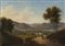 Maestro lombardo del XIX Secolo "Paesaggio con viandanti e lago sullo sfondo"...