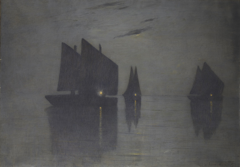 Filippo Carcano (Milano 1840 - 1914) "Pesca notturna" olio su tela (cm 101x142) Firmato in basso a destra In cornice