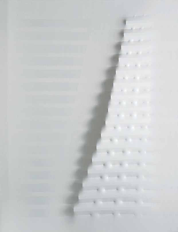 Agostino Bonalumi Vimercate 1935 Bianco, 1976 tela estroflessa e tempera vinilica, cm 130x100. Provenienza: Bergamo, Galleria d’Arte Lorenzelli (etichetta e timbri al verso). L’autenticità dell’opera è stata confermata dall’Archivio Bonalumi.