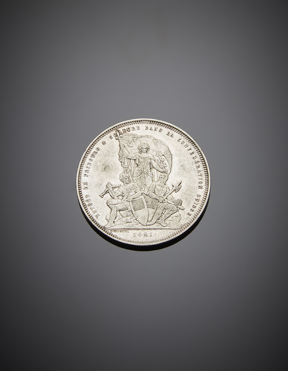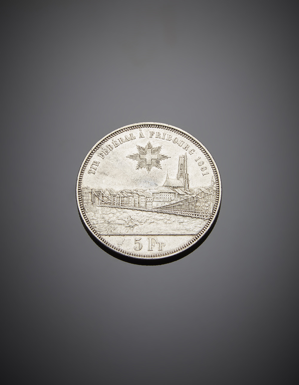SVIZZERA. Tiri federali. Da 5 franchi 1881 Friburgo. KM xs15. Pi˘ di BB