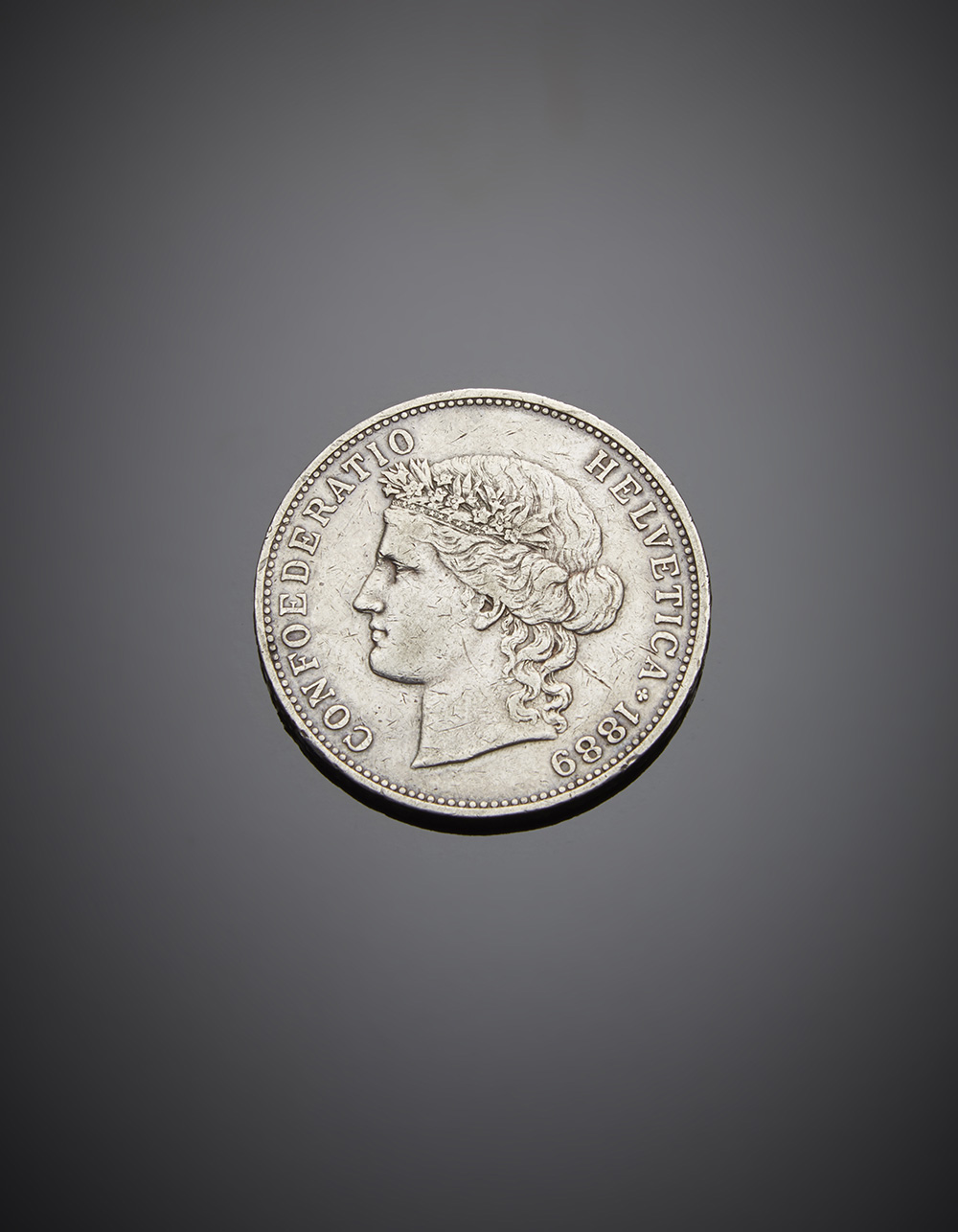 SVIZZERA. Confederazione. Da 5 franchi 1889. KM 34. AG. MB/BB