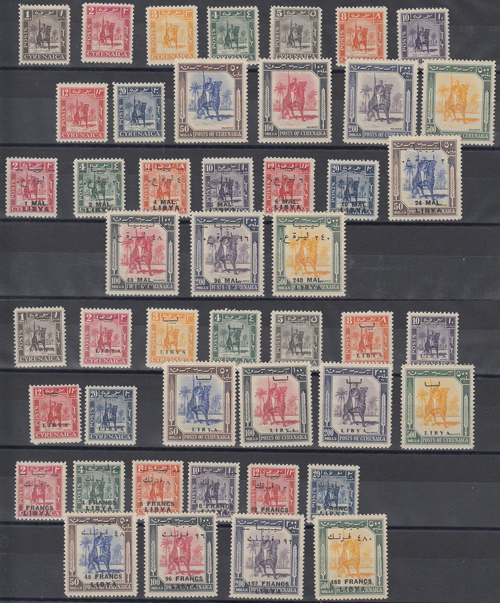 [LIBIA INDIPENDENTE] 1950/1951 "Cavalliere senussita" lotto composto da 4 serie complete. Tiratura mista per l'emissione del Fezzan. Da esaminare. MNH