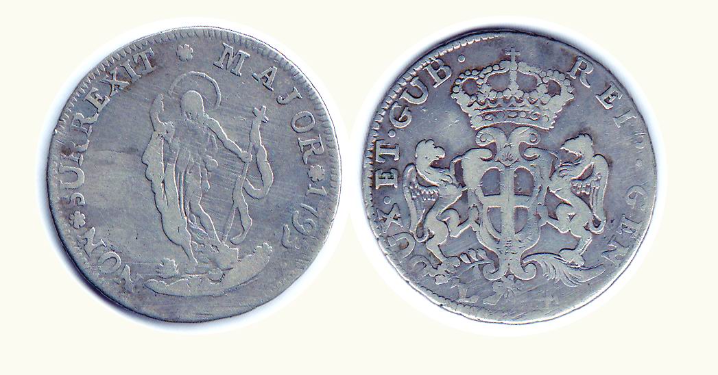 GENOVA - Dogi Biennali - 4 Lire 1793 (stemma barocco); D/ Stemma (barocco) coronato tra grifi, all'esergo, L 4; R/ S. G. Battista predicante - Lun.352. Metallo: AR - Conservazione: MB