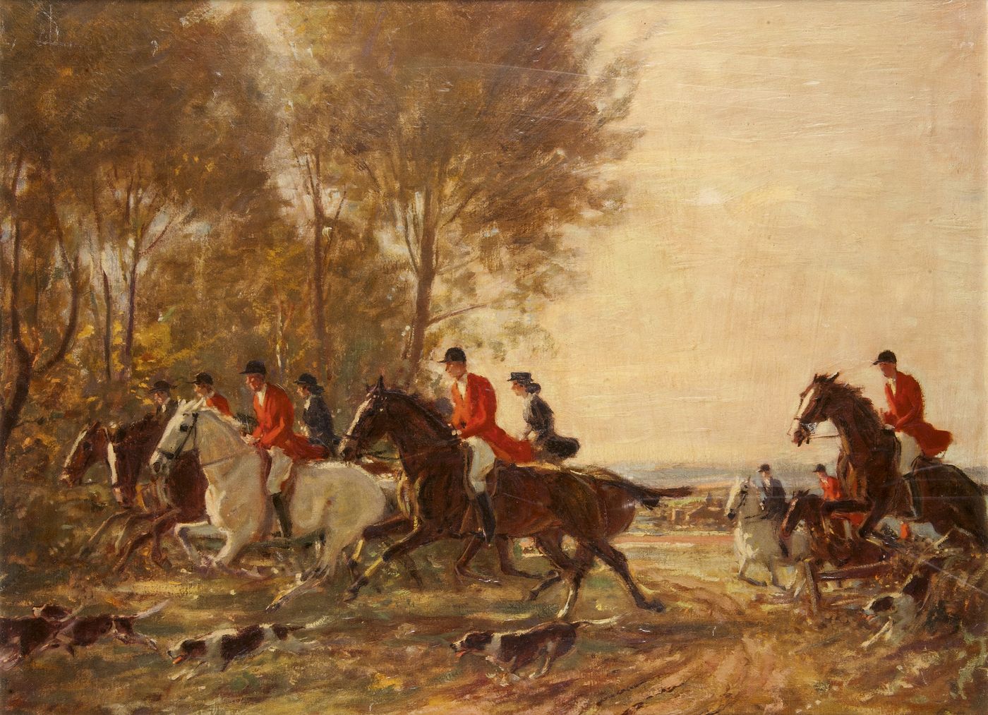 JUNGHANNS JULIUS PAUL 1876-1958 " A caccia" 50x67 olio su tela Opera firmata in basso a sinistra