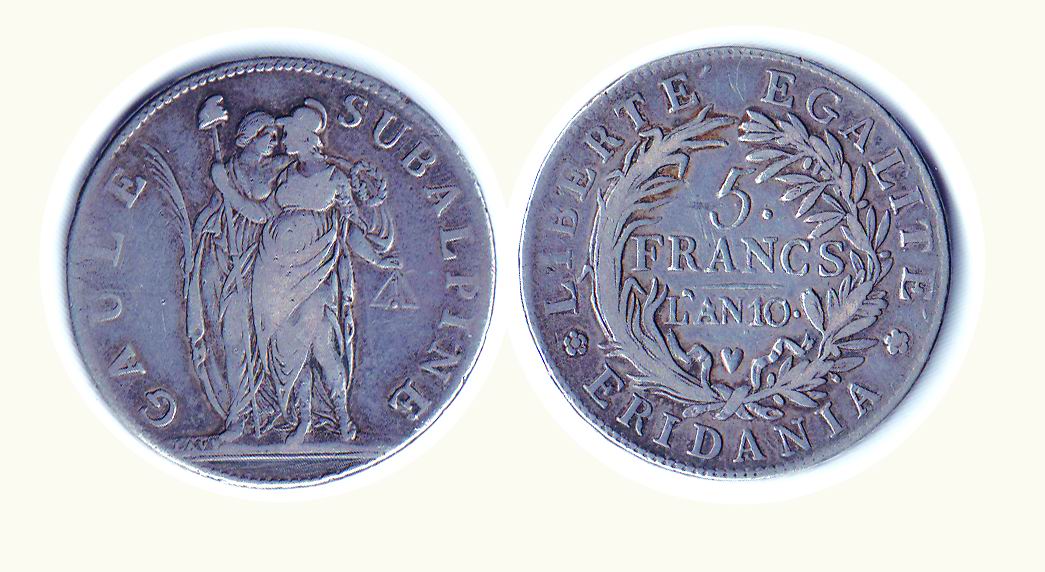 TORINO - Repubblica Piemontese - 5 Fr. 1802 Metallo: AR - Conservazione: q.BB/BB