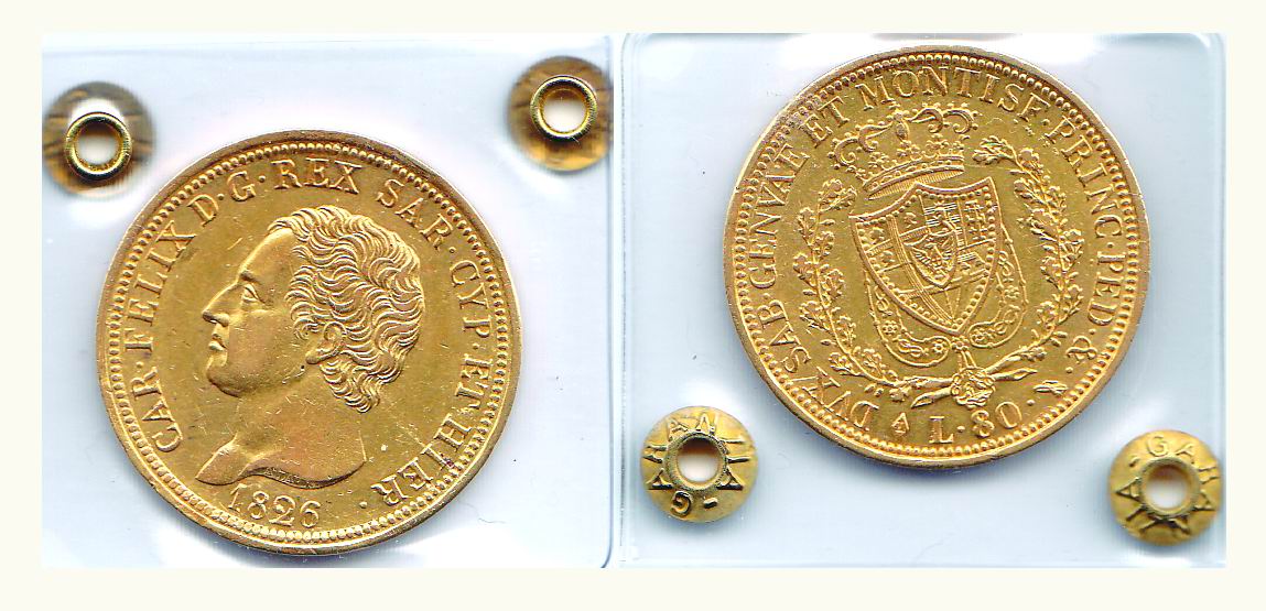 CARLO FELICE (1821-1831) - 80 Lire 1826 TO - P.28. Metallo: AU -...