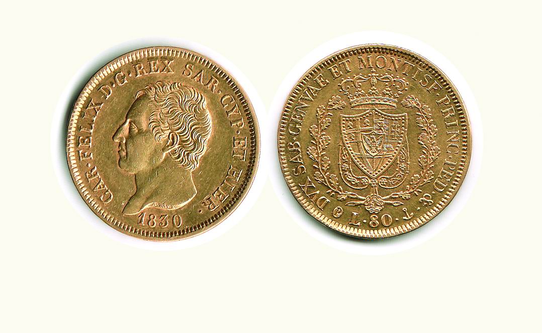CARLO FELICE - 80 Lire 1830 GE - P.35. Metallo: AU - Conservazione: q.SPL/SPL